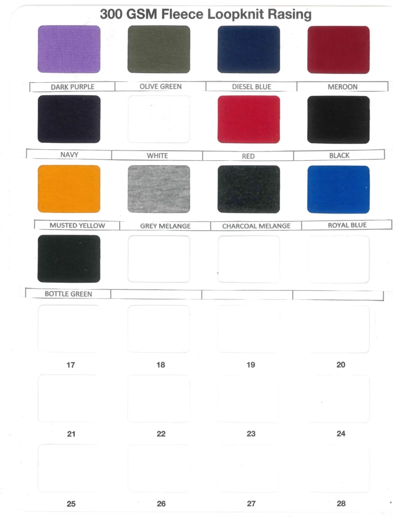 The 100% Cotton Fleece Knit Fabric (360 GSM) is a heavyweight fabric designed for maximum warmth and comfort. With a unique 34’s / 34’s / 10’s yarn count construction, this fabric offers excellent thickness, durability, and insulation. It is bio-washed for enhanced softness and is perfect for garments requiring heavy, cozy materials. Also known as Three thread Fleece / Loopknit raising Knit Fabric, this fabric is ideal for cold-weather clothing like hoodies, jackets, and sweatshirts.