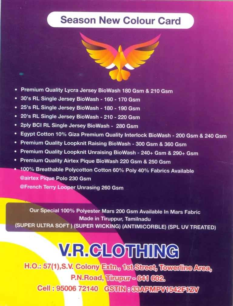 The Minimum Order Quantity for this fabric is 20 kg per color, offering flexibility for both small and large production orders. Matching Lycra Durby is available upon request for additional customization.